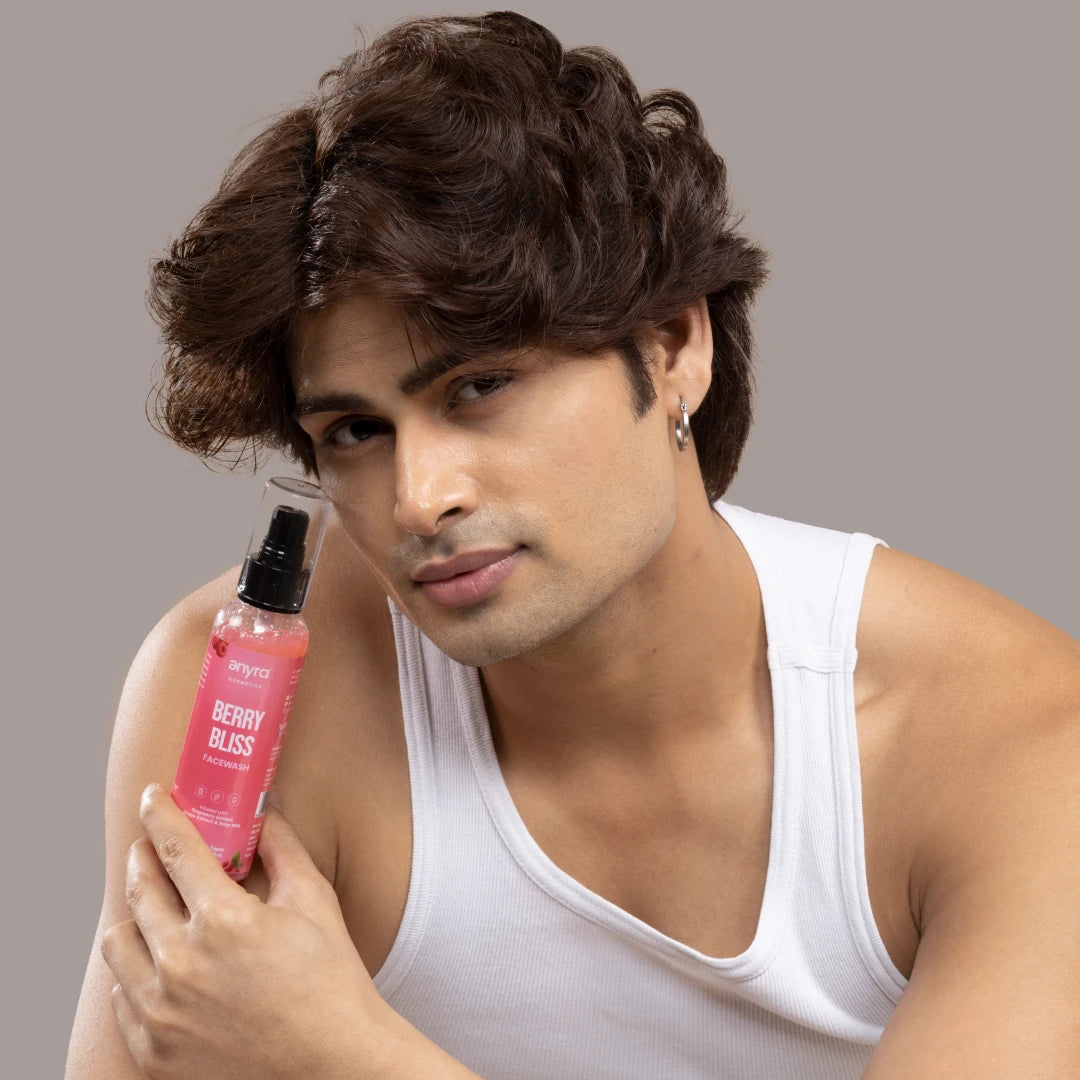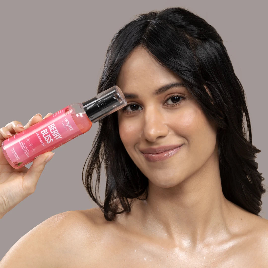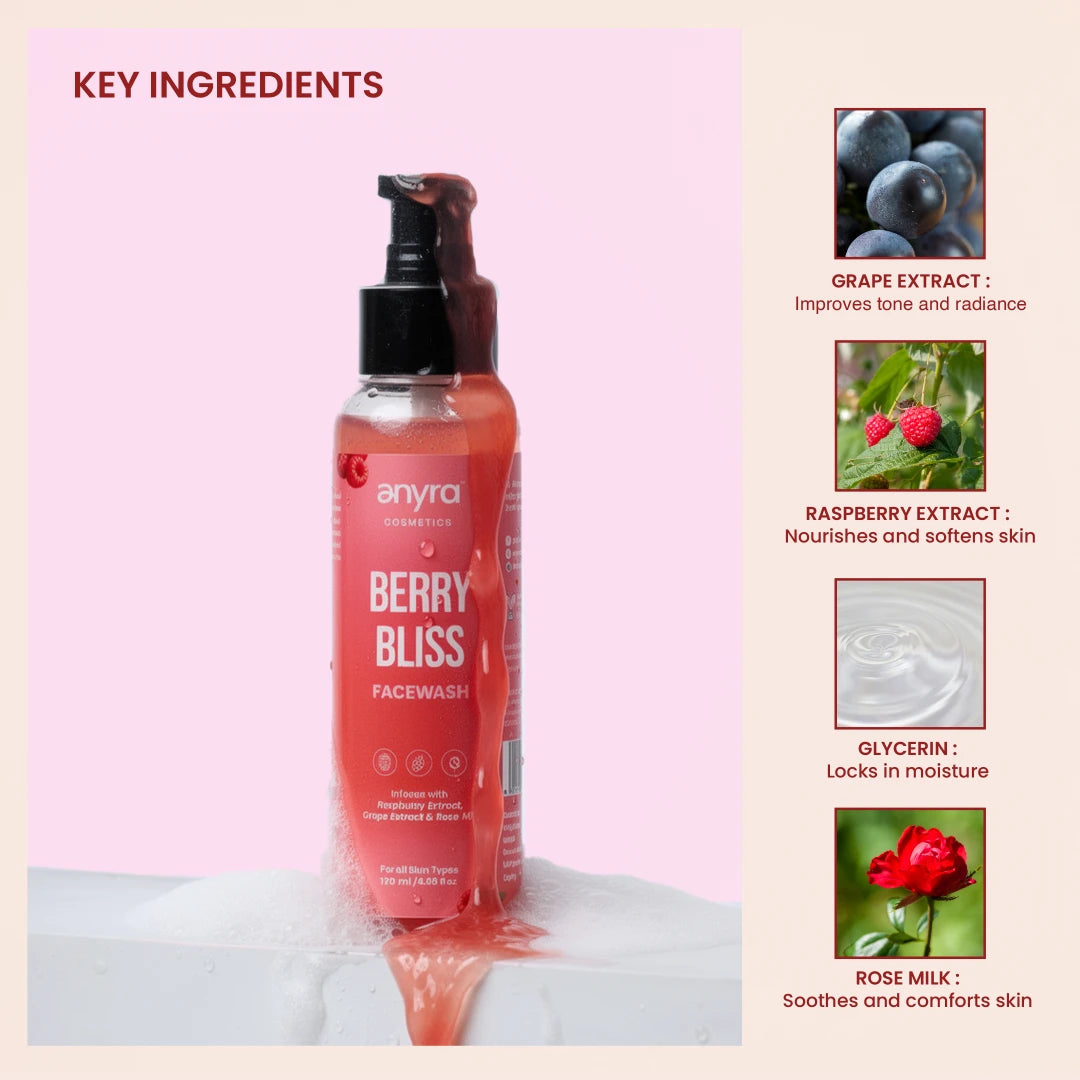 Awaken and pamper your skin with the Berry Bliss Face Wash, a gentle, fruit-infused cleanser that revitalizes every wash. Enriched with Grape Extract, it brightens and improves skin tone, while Raspberry Extract nourishes and enhances softness. Lightweight and refreshing, it cleanses impurities without over-drying, leaving skin smooth, radiant and naturally luminous. A hint of Rose Milk adds a soothing touch and delicate scent, making daily cleansing a luxurious, indulgent ritual.