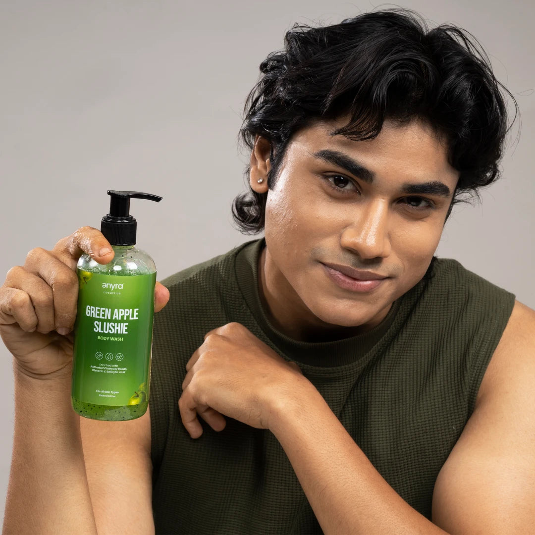 Awaken your senses with the refreshing luxury of Green Apple Slushie Body Wash. This invigorating formula blends Plant-Based Surfactants for a rich, gentle cleanse, while Charcoal Beads delicately polish away impurities to reveal smooth, radiant skin. Glycerin locks in deep moisture, leaving your body soft, supple and hydrated after every shower. It’s infused with the crisp color and vibrant fragrance of green apple for a burst of freshness that uplifts and energizes.
