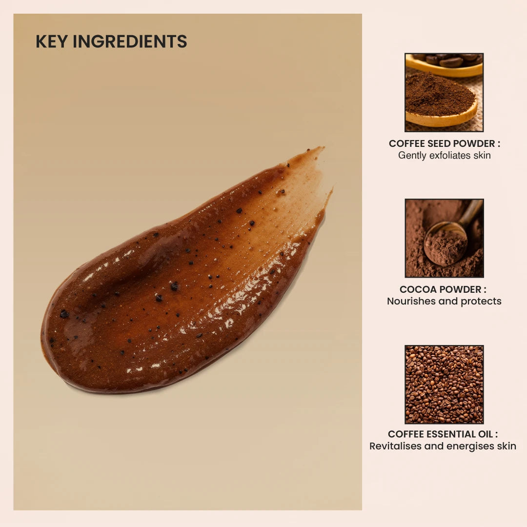 Awaken and energize your skin with Mocha Melt Face Scrub, a gentle, aromatic exfoliator that polishes away dullness and reveals a smooth, radiant complexion. Coffee Seed Powder removes dead skin cells, while Cocoa Powder nourishes and provides antioxidant protection. Infused with Coffee Essential Oil, it revitalizes and energizes the senses with every use. Perfect for weekly exfoliation, this indulgent scrub leaves skin soft, refreshed and naturally glowing.