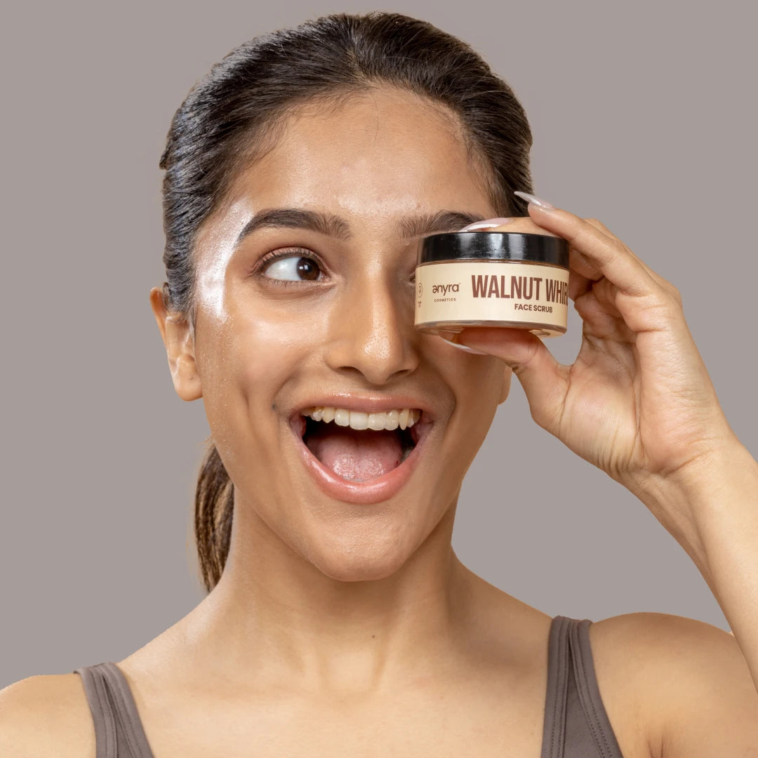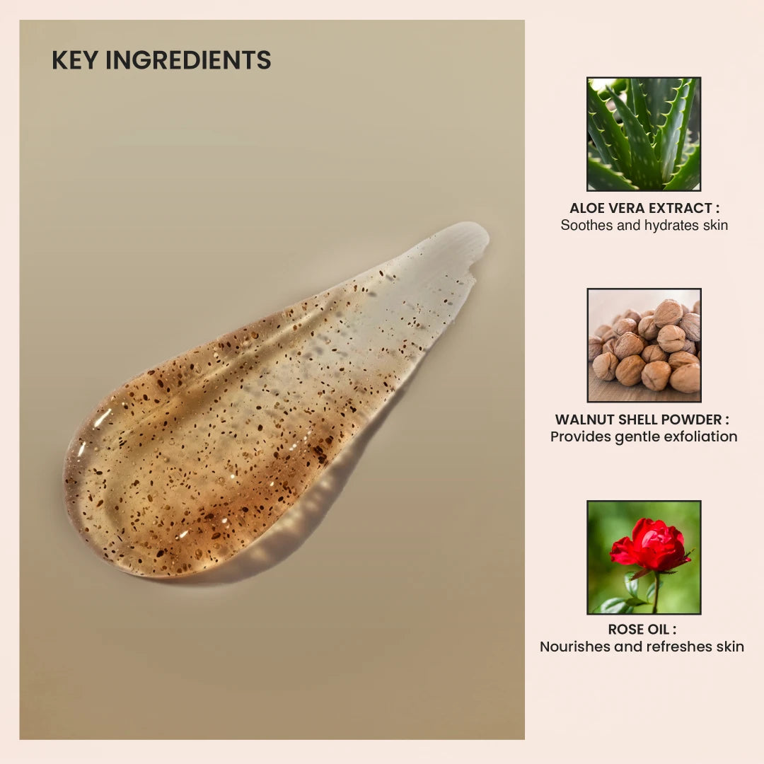 Refresh and smooth your complexion with Walnut Whirl Face Scrub, a gentle yet effective exfoliator that removes dead skin cells and revitalizes dull skin. Walnut Shell Powder provides natural mechanical exfoliation, while Aloe Vera Extract soothes, hydrates, and calms the skin. Infused with Rose Oil, it nourishes and refreshes with a delicate floral aroma. Perfect for weekly use, this scrub leaves skin soft, smooth, and naturally radiant.